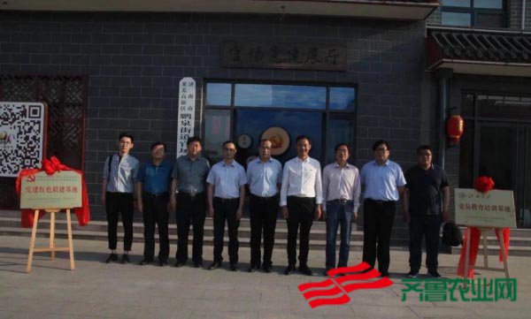 济南大学党委组织部张培国部长与官场村党支部副书记吕清祥一起为党建联建基地揭牌。