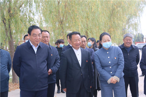 濮阳市副市长孙永振(左1)陪同柳忠勤等参观濮阳县庆祖镇